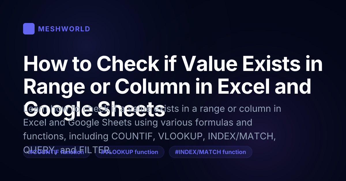 When working with large datasets in Excel or Google Sheets, it’s often necessary to verify if a specific value exists within a particular range or column.