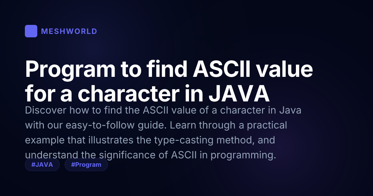 In this article you’ll find how to get ASCII value for a character in JAVA