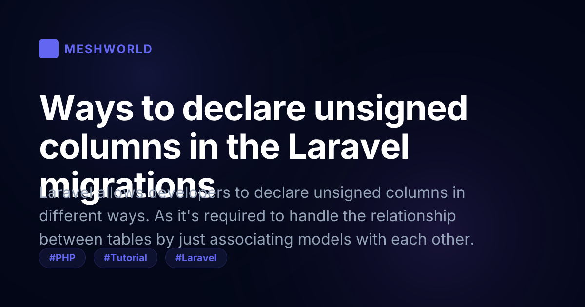 In this tutorial, we’ll see how we can declare columns as unsigned in different ways in Laravel.