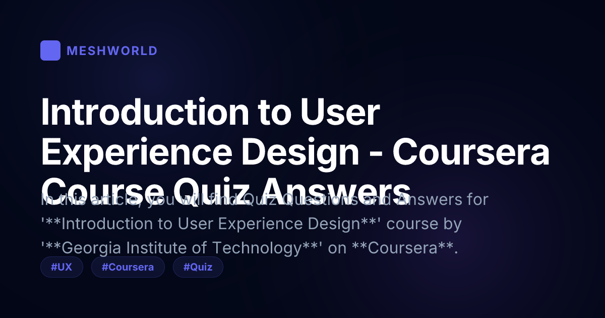 Introduction to User Experience Design - Coursera Course Quiz Answers